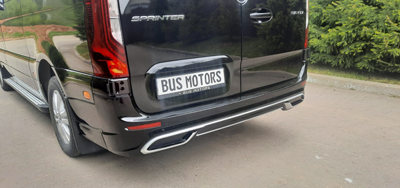 Задний бампер VIP МЕРСЕДЕС СПРИНТЕР W907 подчеркнёт спортивный стиль вашего автомобиля. В#nbsp;комплекте с#nbsp;бампером идут декоративные накладки, имитирующие выхлопные трубы, что придаёт задней части авто более агрессивный и#nbsp;динамичный вид.