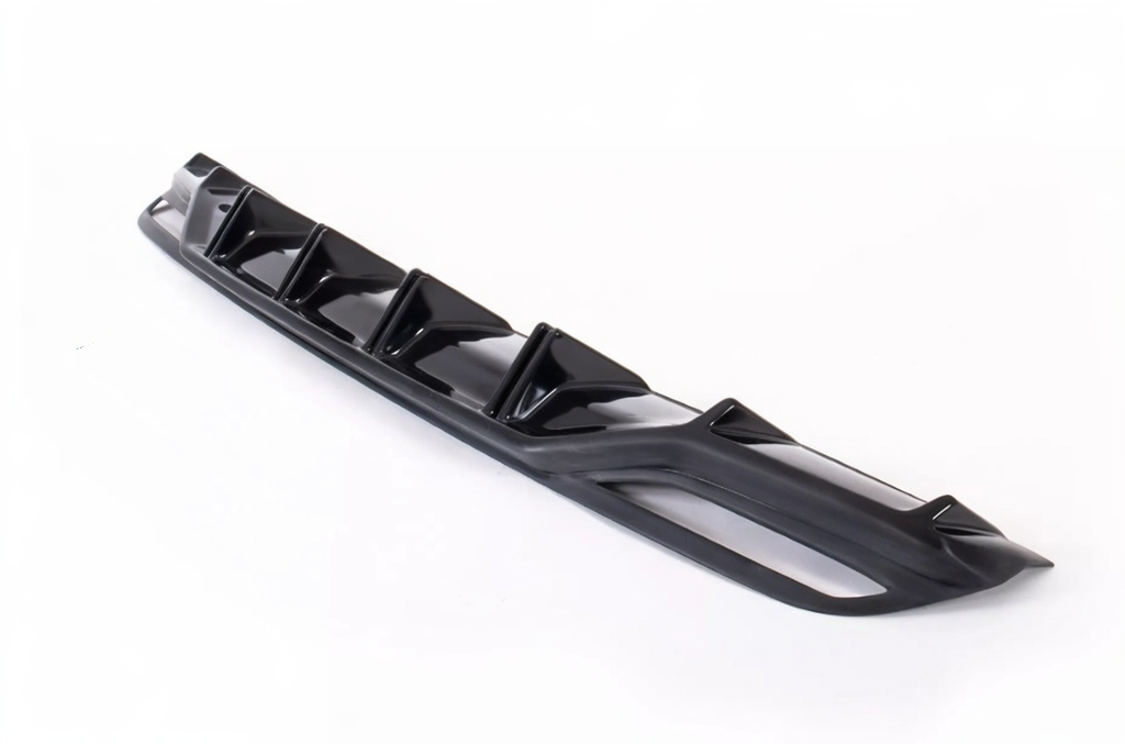Монтаж выполняется поверх штатного диффузора без необходимости подгонки. Крепление осуществляется на двусторонний 3М скотч и стекольный герметик, для дополнительной фиксации предусмотрены болтовые соединения в нижней части бампера.