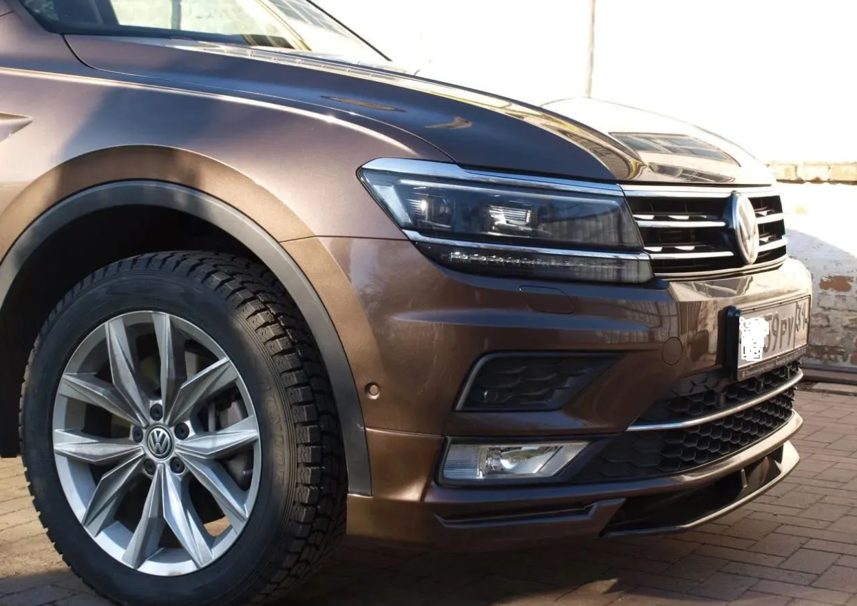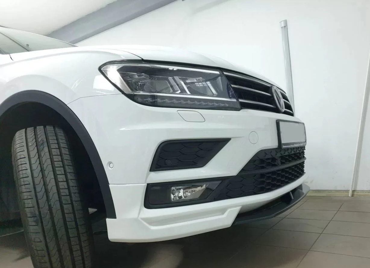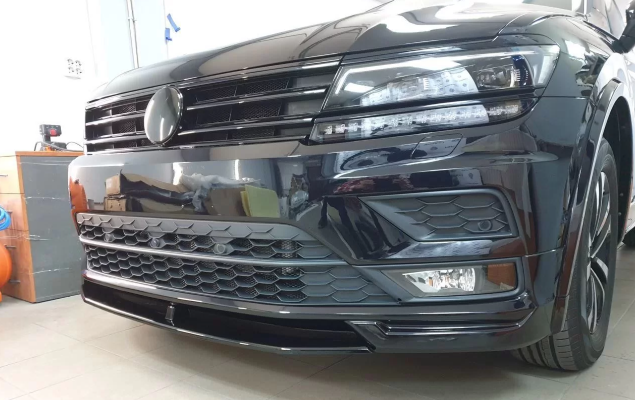 Накладка переднего бампера Tiguan MK2, тюнинг Volkswagen Tiguan 2020, аксессуары VW Tiguan рестайлинг. Накладка на бампер Тигуан 2, тюнинг Фольксваген Тигуан, аксессуары Тигуан 2020—2024.