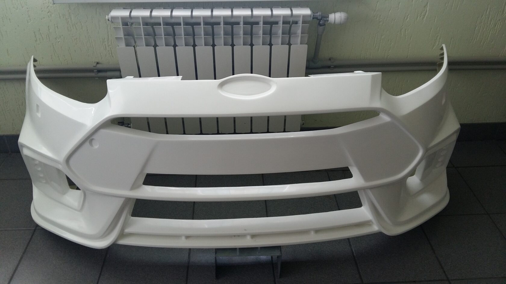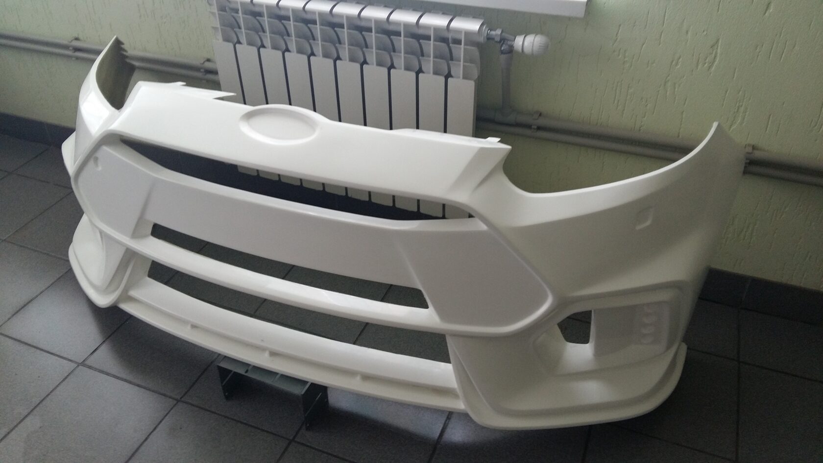 - Изготовлен из стеклопластика, крепится на#nbsp;штатный бампер с помощью стекольного герметика.